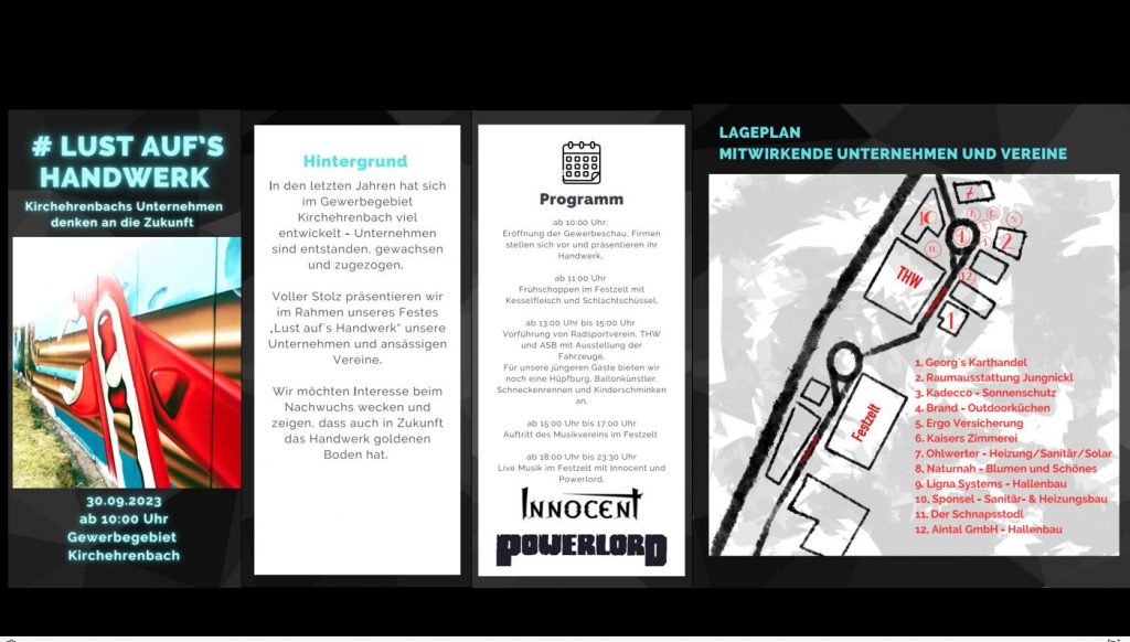 Die Interessengemeinschaft Kirchehrenbach- ein Verband von mehreren Handwerksbetrieben und Vereinen aus dem Gewerbegebiet Kirchehrenbach im Lindenanger- versucht aktiv gegen diese Vorurteile anzugehen. Sie lädt am Samstag, den 30 September 2023 zu einem Tag der offenen Tür ein.