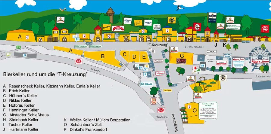 Wer zuviel säuft hat keinen Plan mehr wohin er eigentlich will. Da ist was dran. Deshalb hier mal ein kleines Übersichtsplan über das gesamte Bergkirchweihgelände.