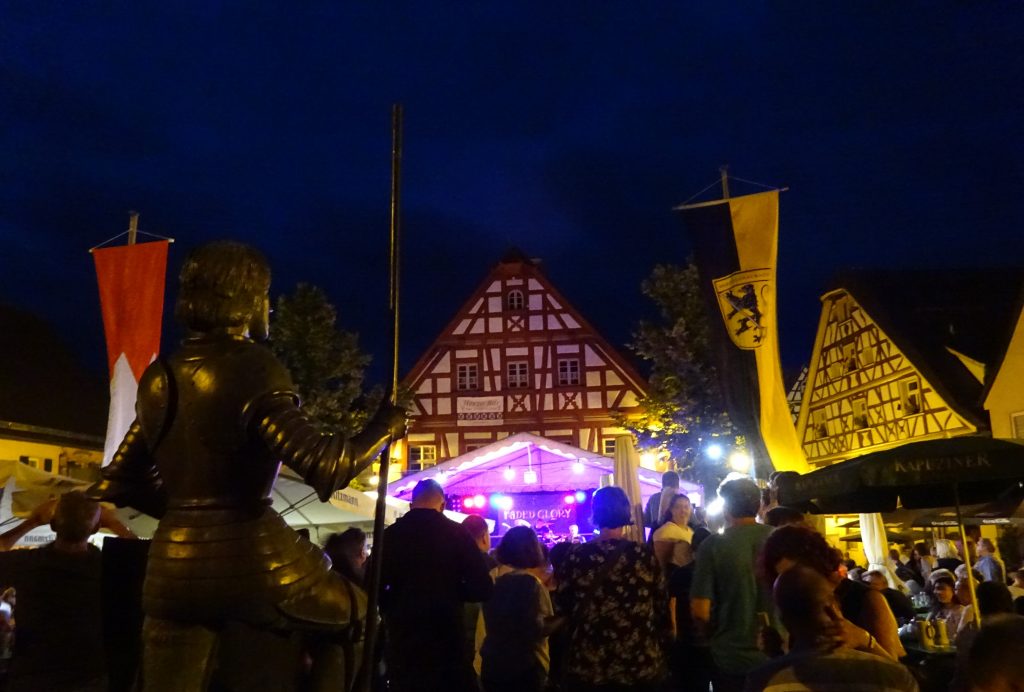 Die Marktplatzbühne: Das Herz des Altstadtfestes sitzt am Marktplatz. Eingerahmt zwischen Georgsbrunnen, dem Open- Air Biergarten und dem Eiscafe Cortina steht zentral die Bühne am Marktplatz. Hier eröffnet der Oberbürgermeister (German Hacker aktuell) um 18.00 Uhr am Freitag das Altstadtfest. Die Stadtjugendkapelle als eine tragende Säule des „Spielgeschehens“ auf dem Marktplatz musziert nicht nur selbst in all ihren Ausprägungen auf der Bühne. Sie kümmert sich auch um das allabendliche Musikprogramm, welches auf Jung und Alt abgestimmt ist. Top Partybands wie „Die Nachtschicht“ oder die Moskitos durften hier schon für Wirbel sorgen. 2019 holte man erstnals die Band Faded Glory auf die große Marktplatzbühne.