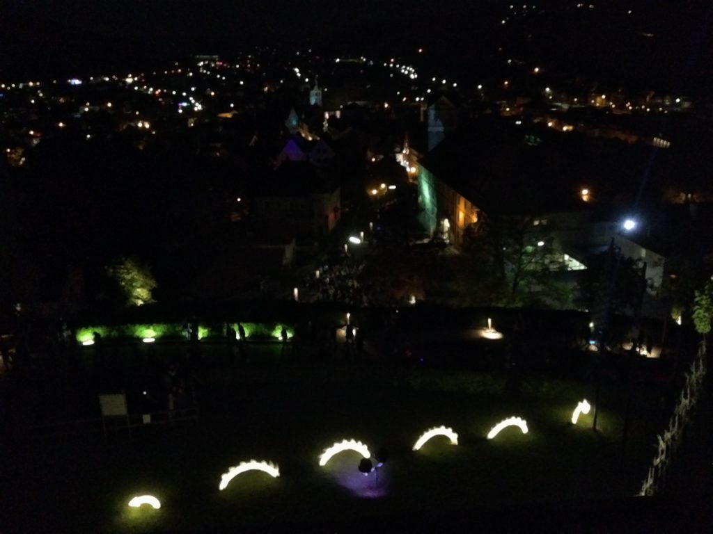 Die Stadt ist leer? Wie ausgestorben. Hat uns das Schicksal schon vor zwei Jahren eine geheime Botschaft ausgesendet? Nein, die Lichtpunkte konzentrieren sich im Jahr 2018 größtenteils auf die Festungsanlage Rosenberg. Genug Zeit also mal auf dem Marktplatz etwas Musik zu hören.