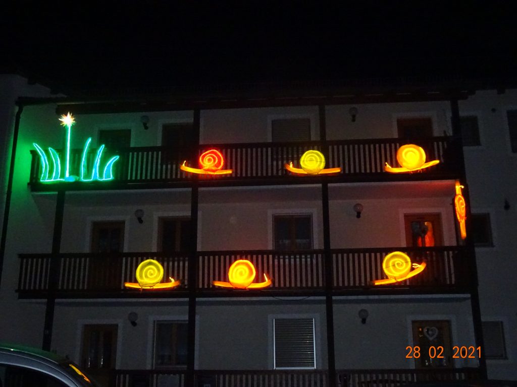 Unter den aktuellen Bedingungen und den damals gerade erst aufgekommenen Mutanten wäre eine sichere Durchführung nicht zu vertreten gewesen. 2022 soll dann aber endlich Kronach in den hellsten Farben erstrahlen, wenn die Pandemie hoffentlich besiegt ist bis dahin. Ganz im Dunkeln wollte Kronach Creativ e.V die Fans aber nicht lassen und initiierte vom 12.2.2021-7.3.2021 ein coronakonformes Lichtspektakel. Unter dem Motto „Lichtkunst to go“ sollten „Lichtblicke“ den grauen Lockdown Alltag aufhellen und Sehnsüchte wecken für den „Ausgang ins Licht“ nach der überstandenen Krise. 28 Lichtpunkte wurden dafür über die ganze Stadt verteilt installiert. Auf der Festung Rosenberg nahmen die Wünsche der Menschen konkrete Gestalt an. Und weit bevor die Einzelhändler ihre Tore öffnen durften, konnte man in Kronach einen Schaufensterbummel der anderen Art erleben.
