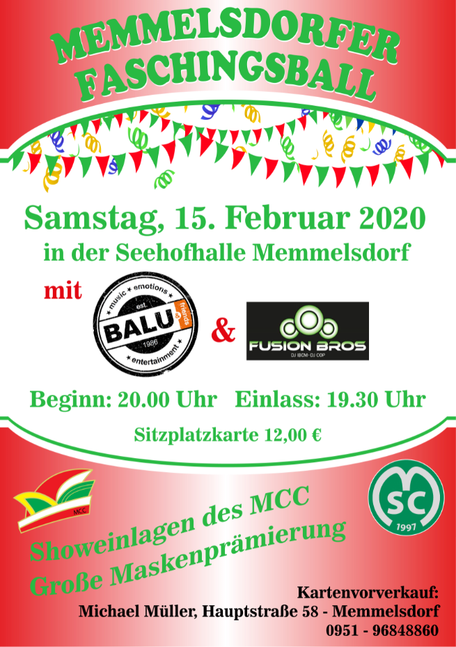 Wer zur Faschingsgala leider verhidnert ist, kann ja immer noch eine Woche später zum Memmelsdorfer Faschingsball kommen