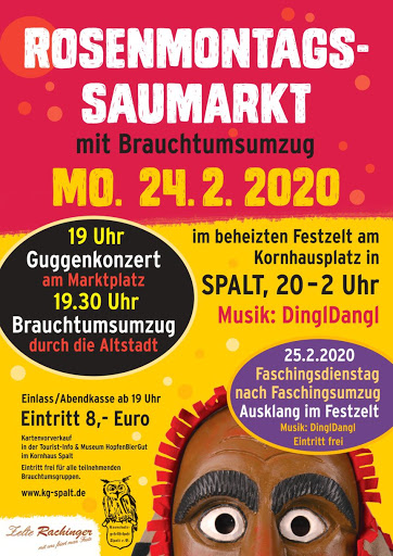 Aber Faschingsmuffel und Outsider können beruhight sein. Die berühmt- berüchtigten Saumarkztbälle ind er Karnavelshochburg Spalt sind nicht wörtlich zu nehmen. Hier laufen nciht lauter Schweine rum, eher der TZhalmässinger Faschingswolf oder die Spalter Faschingsfleckli. Diese sorgen neben der richtig coolen Live-Musik (K7 Partyband, Störzelbacher One & Six) dafür, dass diese Veranstaltung mittlerweile Kultstatus in der gesamten Region erlangt hat. Der Anlass füpr den Umzug der Saumarktbälle ins beheizte Festzelt war eigentlich ein trauriger. 2017 wurde die Stadthalle in Spalt dem Erdboden gleichgemacht.